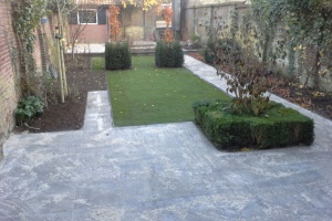 In Nijmegen is een volledig dichtgegroeide achtertuin ingrijpend gerenoveerd en omgetoverd tot een bijzonder kindvriendelijke omgeving. Omdat de tuin bijna een meter dieper lag dan de weg erachter moest het nodige grondwerk worden verzet. Door slim gebruik van materieel is dit desondanks binnen zeer korte tijd gerealiseerd. Op termijn zal hier nog een boomhut worden geplaatst, waarmee extra sfeer en nieuwe speelmogelijkheden worden gecreëerd. <<< Terug naar alle referenties